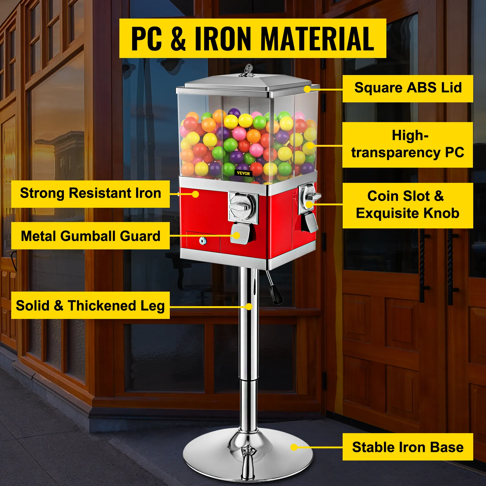 Dimensiones de la cabeza de la máquina de chicles: 5,6 x 5,6 x 10 pulgadas. Adopta una construcción superior con una base de hierro, un tanque de policarbonato de alta transparencia, una perilla exquisita y un protector de chicles.