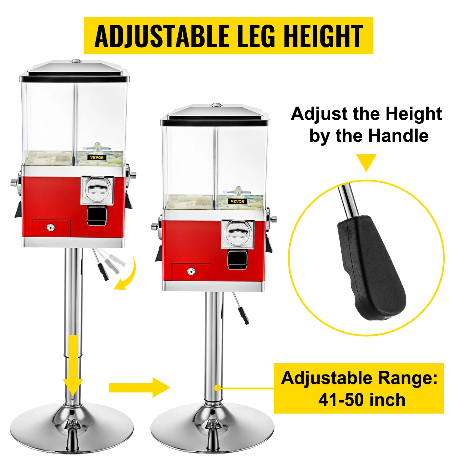 Viene con un soporte, la máquina de dulces está equipada con un dispositivo hidráulico para que pueda ajustar la altura sin esfuerzo a través del mango, rango de altura ajustable: 41-50 pulgadas.