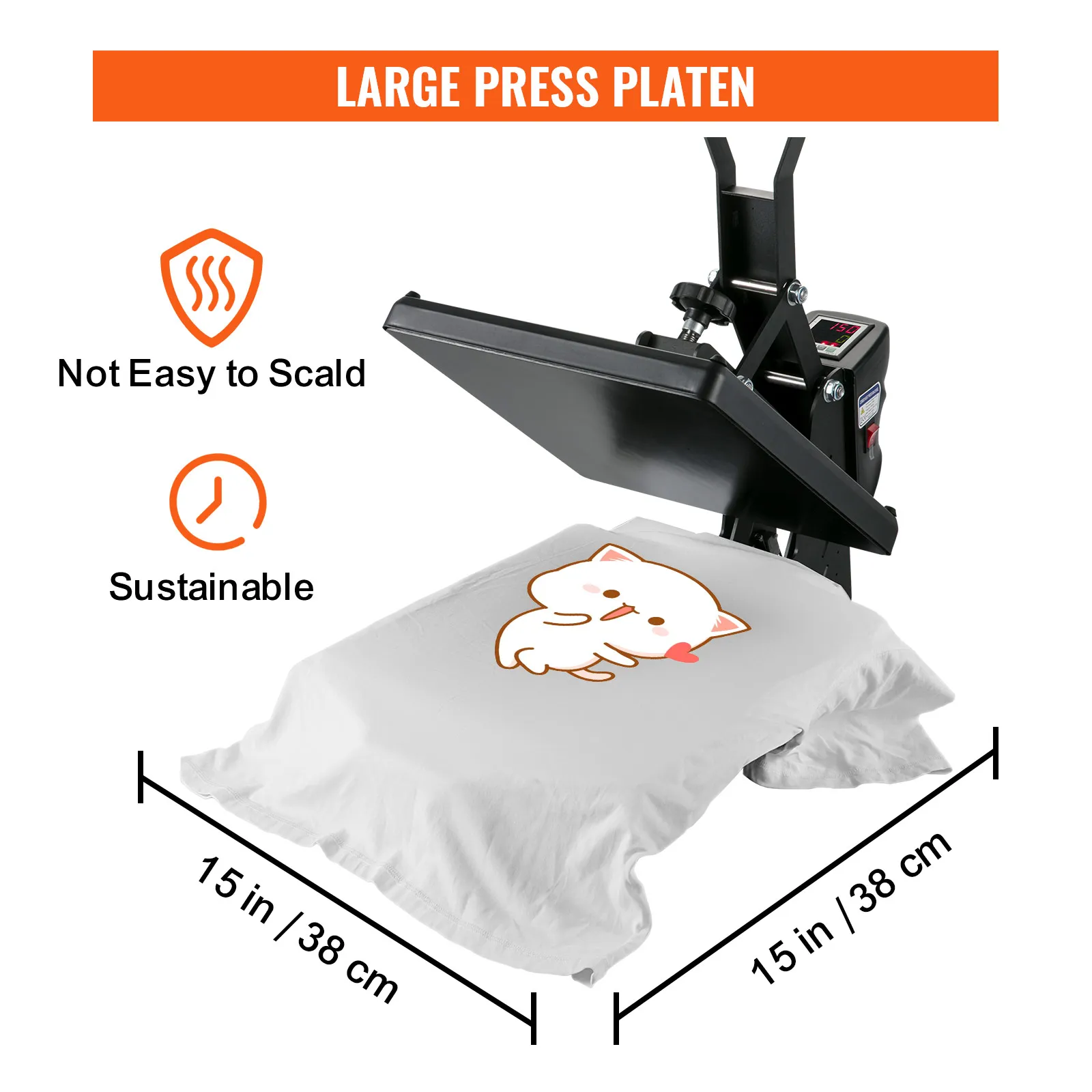 Un área de trabajo grande, de 15 x 15 pulgadas, proporciona un amplio espacio para procesos de prensado en caliente más básicos. Además, el tablero engrosado mejora la retención del calor, lo que garantiza una buena consistencia del calor, lo que garantiza un buen patrón de transferencia.