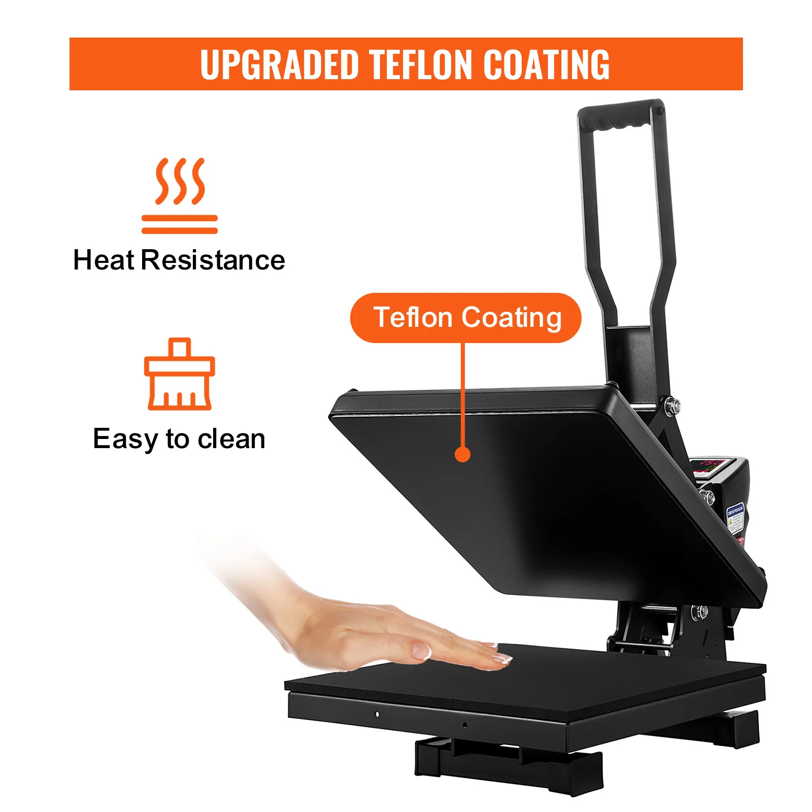 Esta prensa de calor recubierta de teflón es capaz de disminuir la posibilidad de quemarse durante las transferencias. Además, es fácil de limpiar y puede hacer que la impresión sea más estable. Un cable de tierra también está equipado para una operación segura.