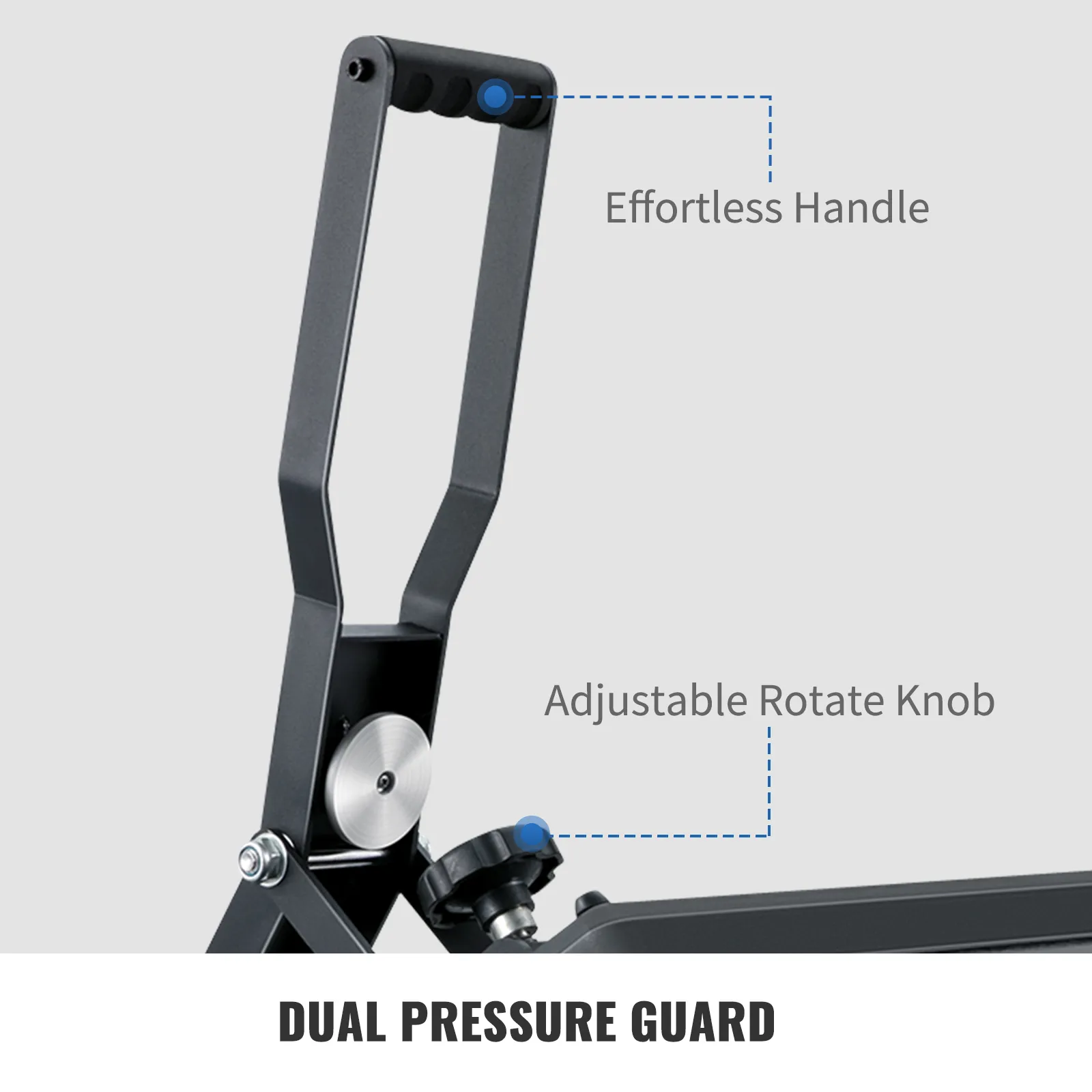 Puede aumentar o disminuir la presión girando la perilla en el sentido de las agujas del reloj o en el sentido contrario a las agujas del reloj y presionando el mango ajustado a la palma de la mano para que la platina envuelva bien los materiales. Perfecto para artículos planos.