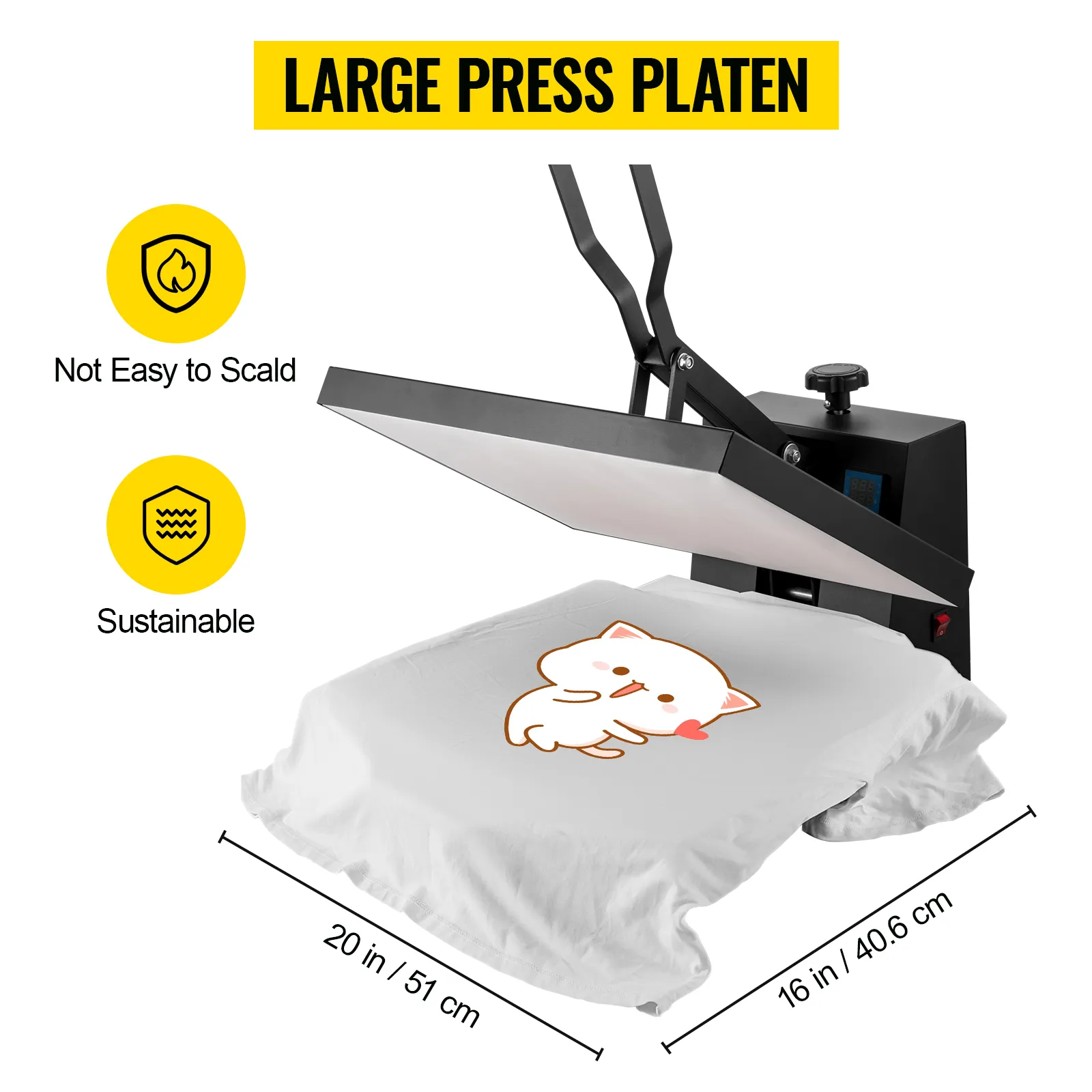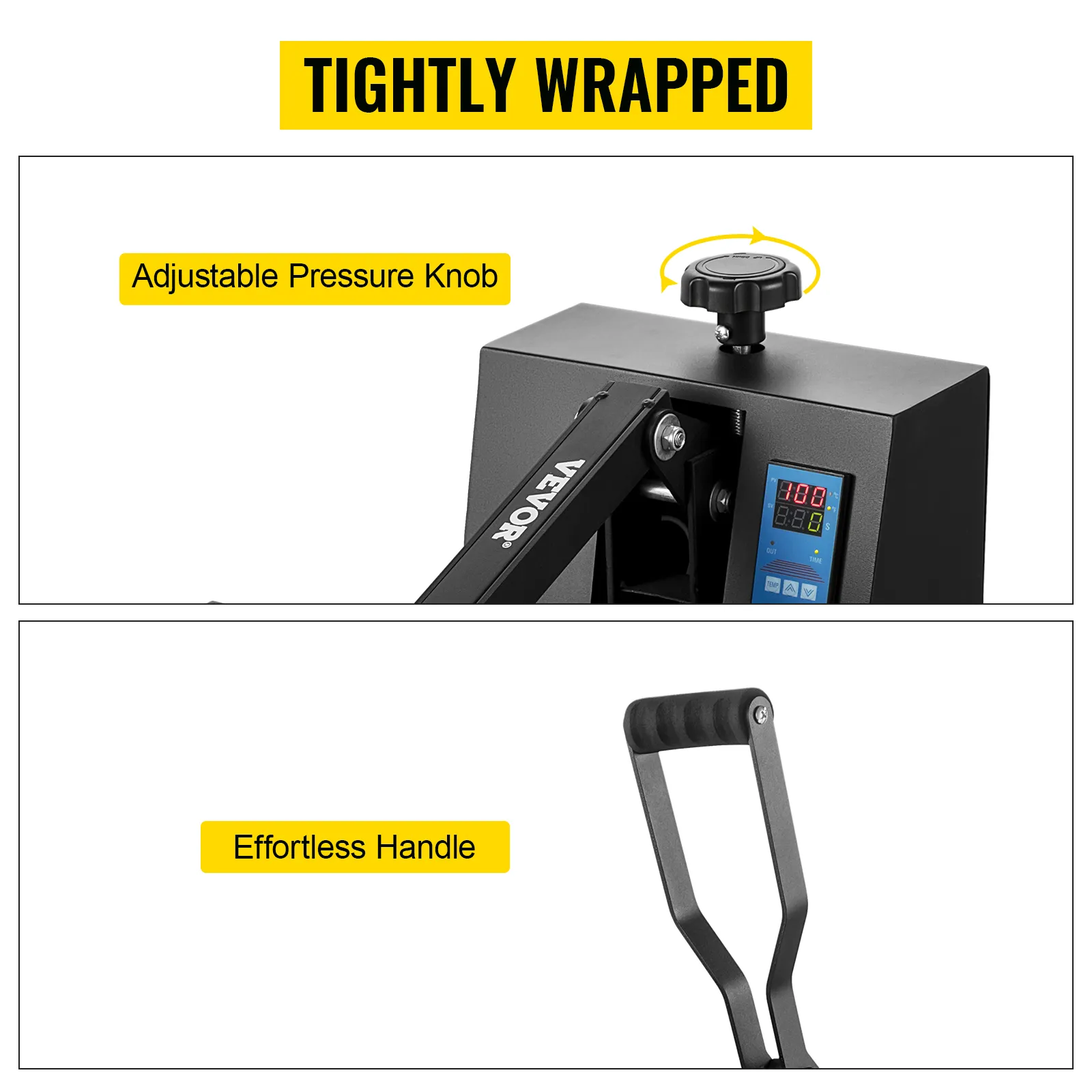 Si una máquina de prensado en caliente puede adaptarse a grandes proyectos, significa que puede iniciar fácilmente su pequeña empresa. No solo puede usarla para imprimir sus diseños personales, sino también para sus clientes. En este sentido, la máquina de prensado en caliente VEVOR presenta una opción confiable para grandes proyectos.