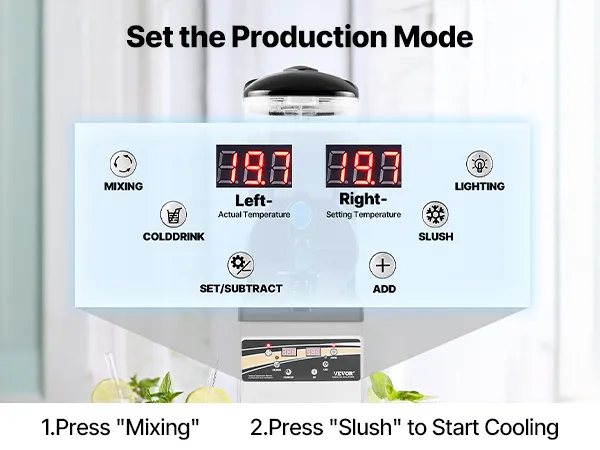 Fácil de usar: El panel de control intuitivo facilita su uso, incluyendo dos modos de funcionamiento (granizado y bebida fría), limpieza automática, control de temperatura y configuración de tiempo. La temperatura se muestra claramente en la pantalla digital, lo que facilita su control en cualquier momento.