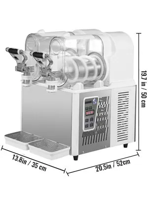 Granizadora de 3 L ( 0.8 US gal)* de 2 tanques , de tamaño compacto pero con un gran rendimiento. Él un gran orificio de descarga para una dispensación más rápida. Ideal tanto para granizados como para bebidas frías.