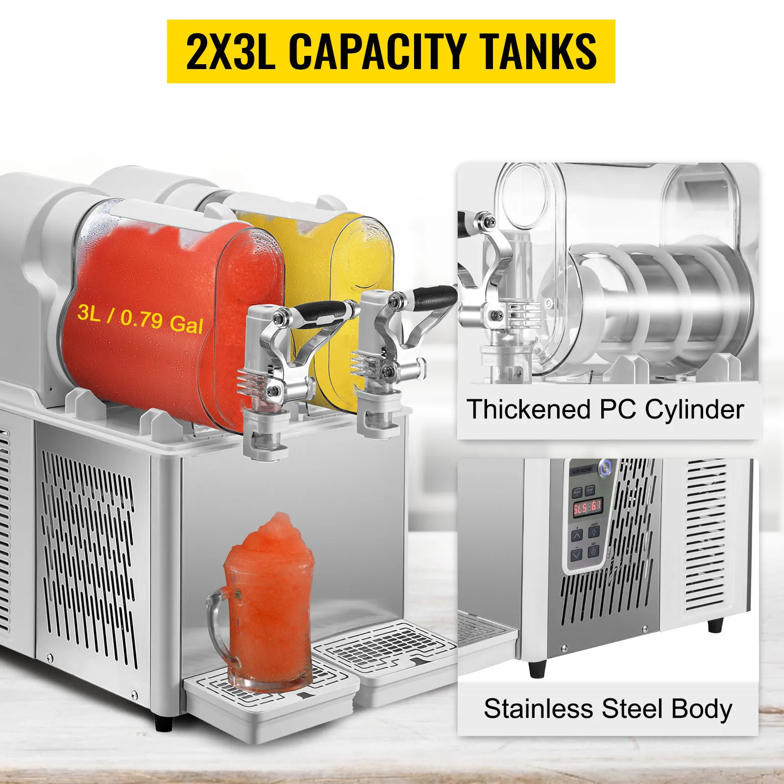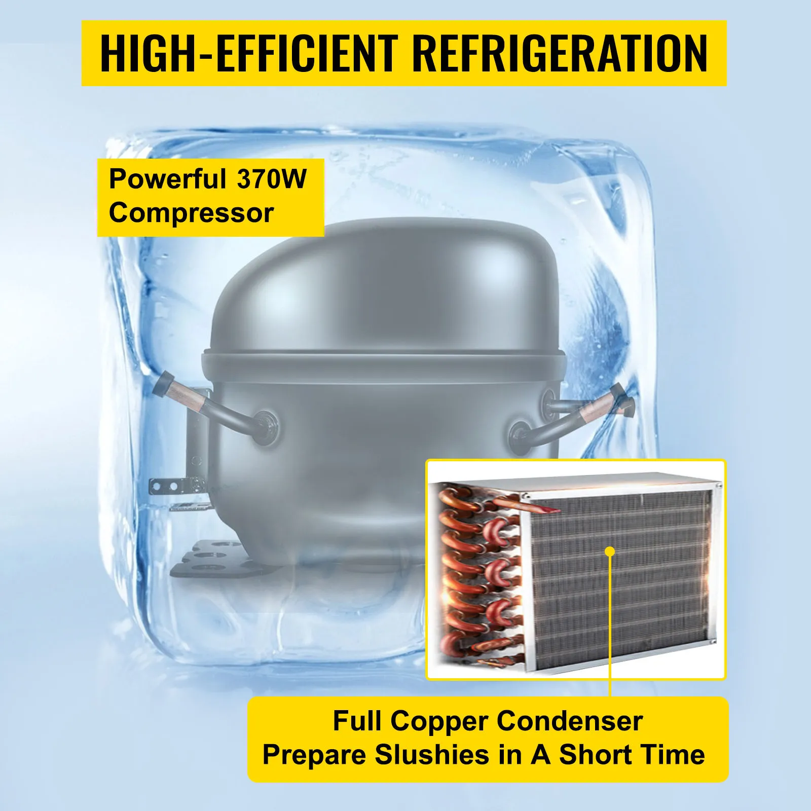 Esta granizadora de 6 L es a Equipo de bebidas imprescindible. Adopta el cuerpo de acero inoxidable y los cilindros de PC , y es robusto y saludable de usar. El compresor premium con un condensador de cobre completo garantiza una refrigeración rápida, lo que mejora significativamente la eficiencia de la fabricación de granizados. El panel de control con una pantalla de visualización digital es fácil de usar. es ideal tanto para uso comercial como doméstico.