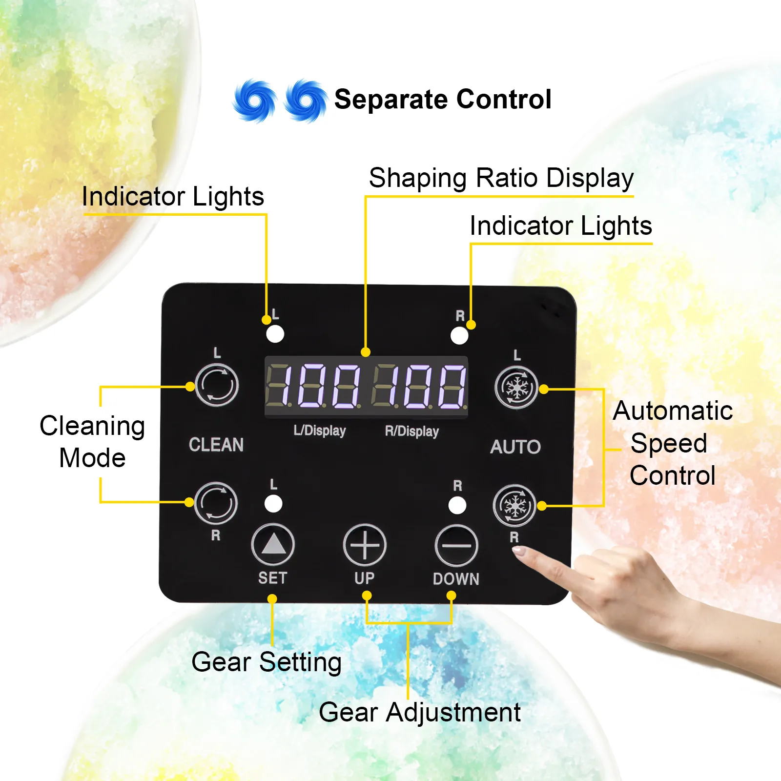 Esta máquina de bebidas congeladas contiene un panel preciso con control de tanque separado y limpieza automática. Las proporciones de conformación se pueden mostrar en las pantallas digitales en alta resolución.