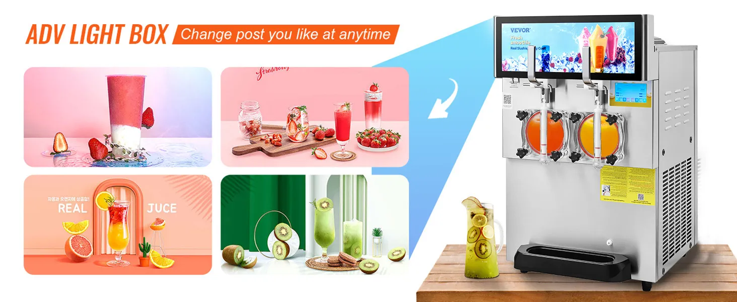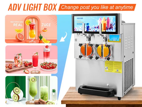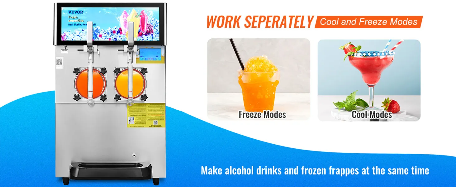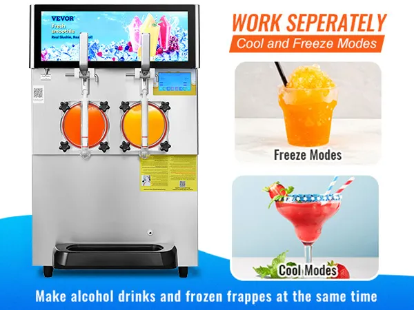 Durante los meses más cálidos, la demanda de bebidas granizadas se dispara en casa o en los bares. La máquina de granizados comercial VEVOR está bien diseñada para seguir produciendo granizados congelados durante el clima cálido. Aún mejor, es la máquina granizadora comercial más versátil del mercado. Más allá de los granizados, este lucrativo dispositivo elabora bebidas alcohólicas, café helado, margaritas, bebidas de frutas y batidos con texturas impresionantes para sorprender a sus clientes. ¡No esperes más, adquiere hoy tu Máquina de Granizados Comercial VEVOR y deja pasar los buenos tiempos!