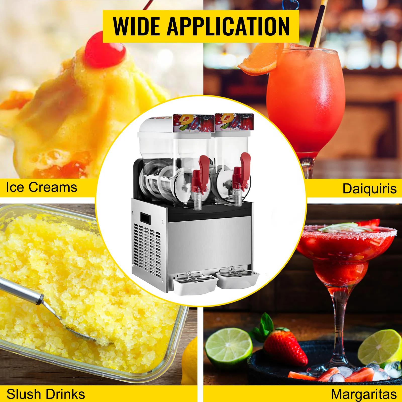 Si busca obtener una mayor relación calidad-precio, ya sea en términos de versatilidad o conveniencia, la máquina de granizados comercial VEVOR es adecuada para usted. A diferencia de otras máquinas de granizados, esta máquina para hacer bebidas congeladas tiene una apertura de tapa separada que le permite agregar ingredientes y preparar deliciosas y refrescantes bebidas caseras. Además, obtienes picos grandes para facilitar el flujo y la dispensación de bebidas congeladas suaves para una experiencia de granizado mejorada.