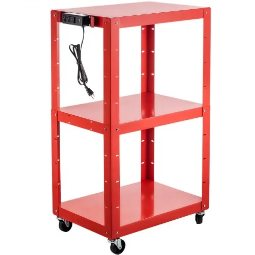 Estación de trabajo de salón VEVOR, unidad de pared para profesionales del cabello, solución de almacenamiento para estilismo de spa, incluye gabinete, 3 estantes y 2 cajones (uno con cerradura), en negro y rojo.