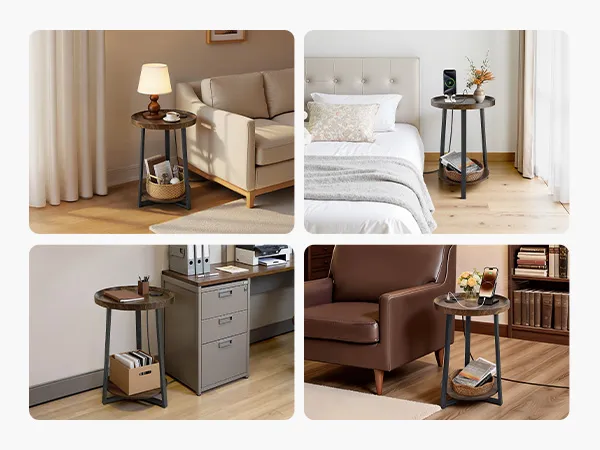 Con un diseño de almacenamiento abierto, la mesa auxiliar te permite guardar y acceder fácilmente a tus artículos de uso diario. Mantén tus libros, tazas, refrigerios, cargadores y cajas de pañuelos perfectamente organizados, ayudando a que tu hogar se mantenga ordenado y sin desorden.