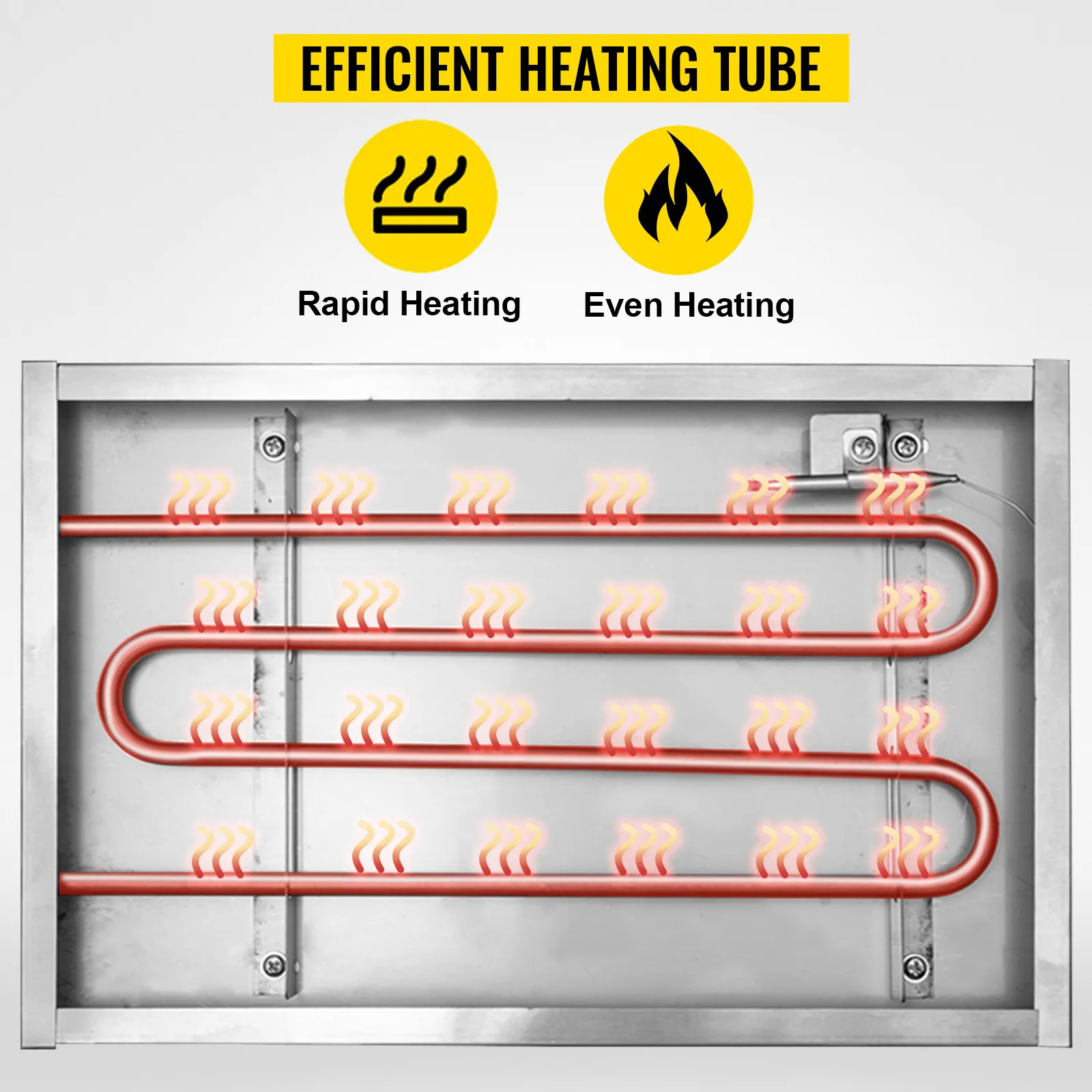 El tubo calefactor está bien diseñado para un calentamiento rápido y uniforme, proporcionando un área de calentamiento más grande para una transferencia de calor eficiente. Una vez enchufado, el tubo está listo para calentar alimentos en cualquier momento.