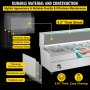 Hecha de material de acero inoxidable de grado alimenticio engrosado, esta mesa de vapor eléctrica es resistente a la presión, duradera e higiénica. El grosor de las láminas de acero inoxidable es de hasta 0,03 pulgadas (0,7 mm).
