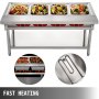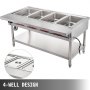 Esta potente mesa de vapor comercial tiene capacidad para 4 recipientes para alimentos, de 20,8"x12,6" (530x320 mm) de tamaño y 20 litros (5,3 galones) de volumen. Se pueden poner varios alimentos por separado. Tapas incluidas para un mejor efecto de aislamiento.