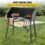 Our outdoor camping table adopts high-quality carbon steel material with a high-temp coating for durable use. It has 132 lbs load capacity for holding more heavy items. In addition, it is equipped with a three-sided windshield, a handle and hooks for hanging cooking utensils, and adjustable feet for adapting uneven grounds. It is easy to install and perfect for use in outdoor cooking places.