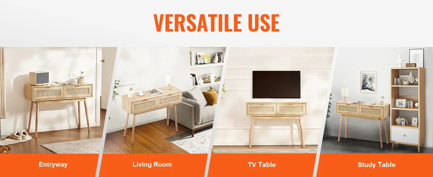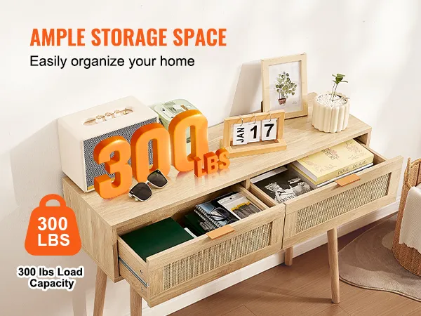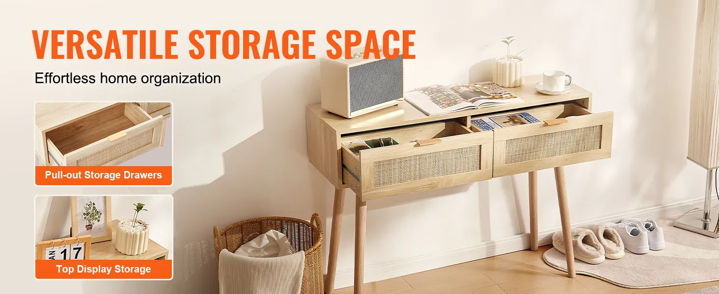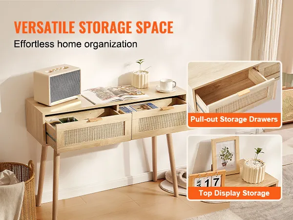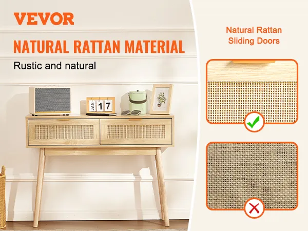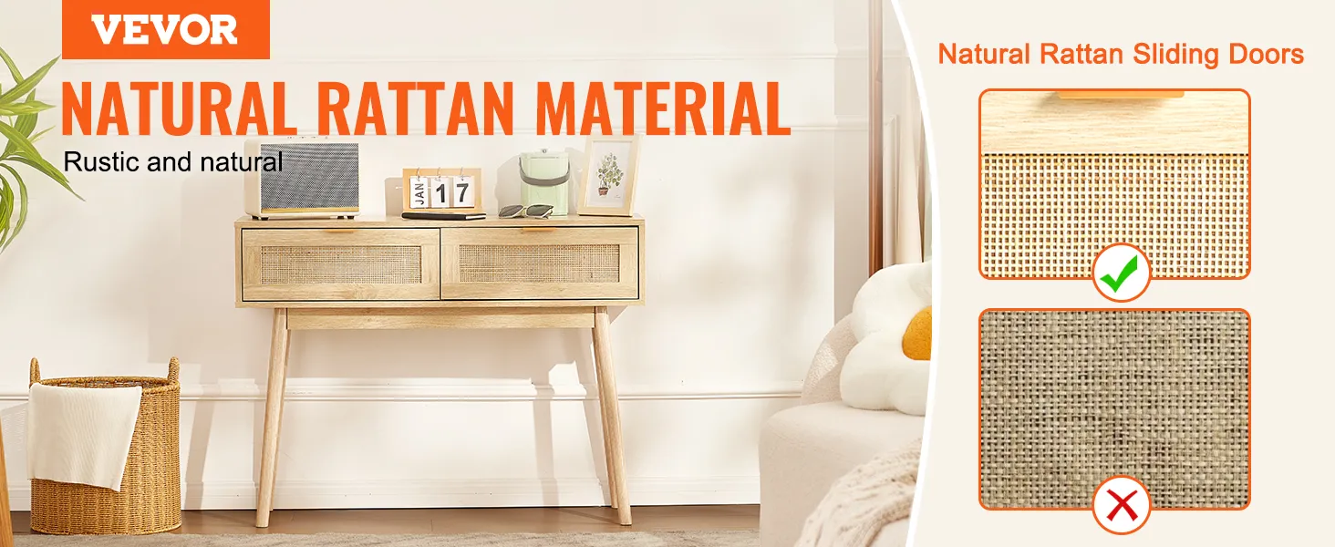 Consola de ratán VEVOR con 2 cajones, mesa de entrada de ratán con puerta corrediza de ratán natural, consola para sala de estar, estudio, entrada o pared de TV, color natural.