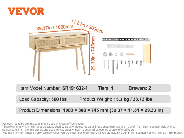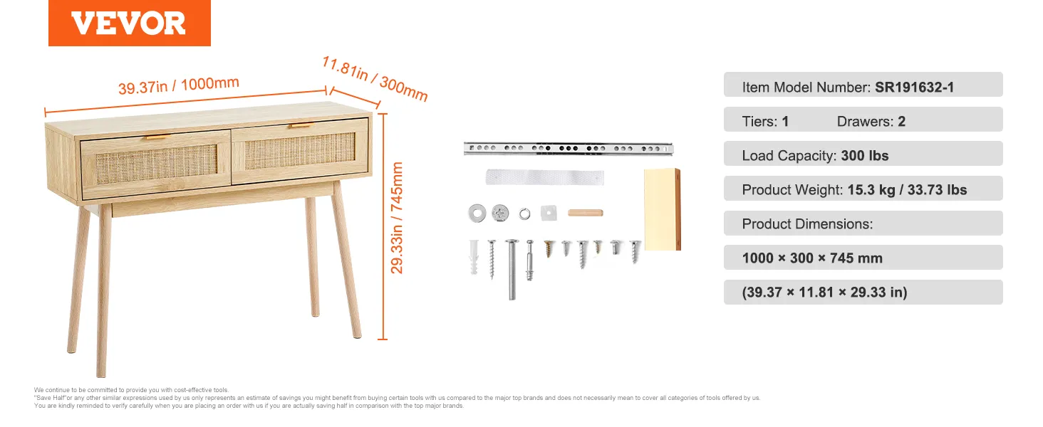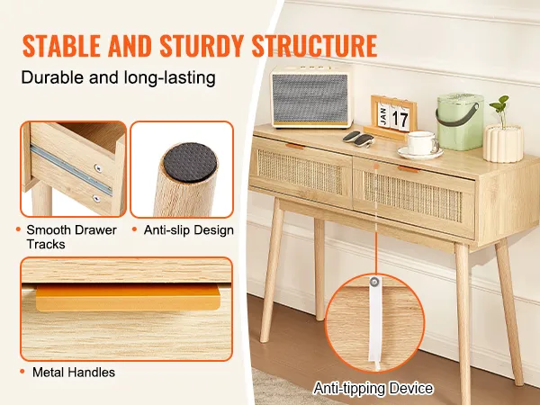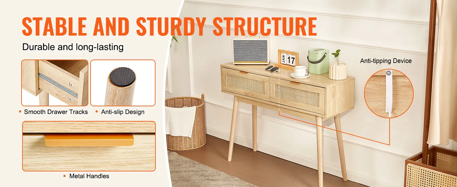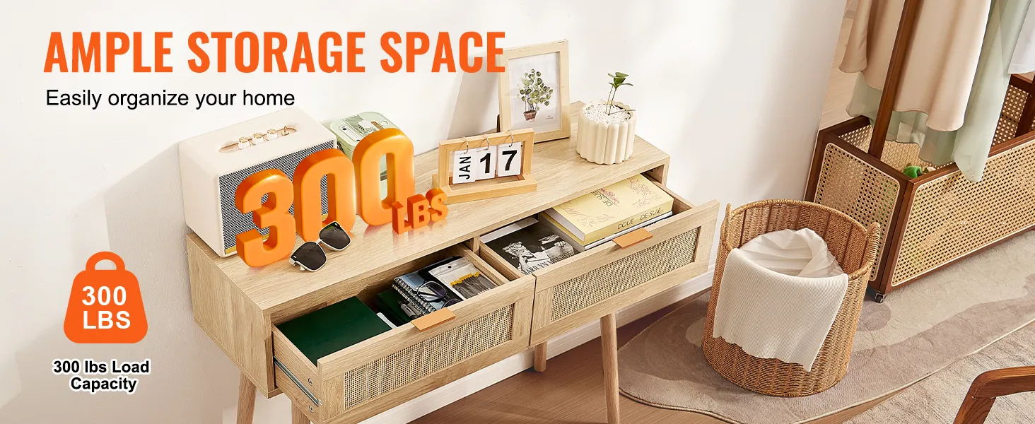 Consola de ratán VEVOR con 2 cajones, mesa de entrada de ratán con puerta corrediza de ratán natural, consola para sala de estar, estudio, entrada o pared de TV, color natural.