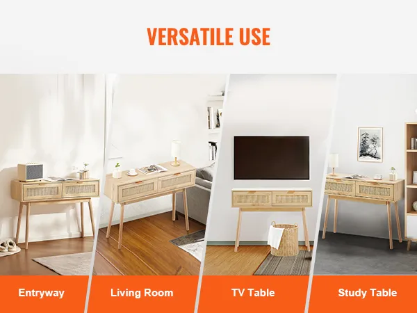 Esta versátil mesa de entrada de ratán se puede utilizar como mesa de exhibición, mesa de almacenamiento o mesa de lectura, lo que la hace perfecta para cualquier espacio.