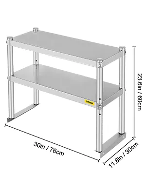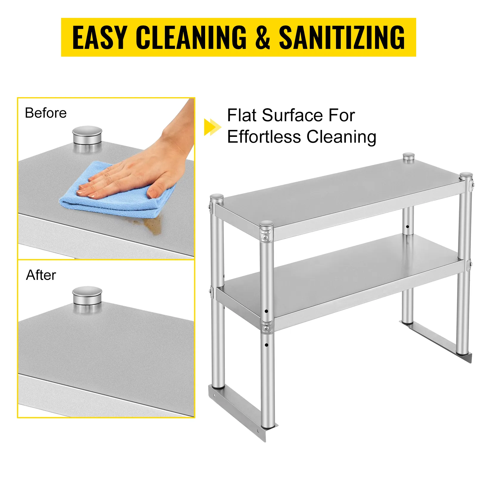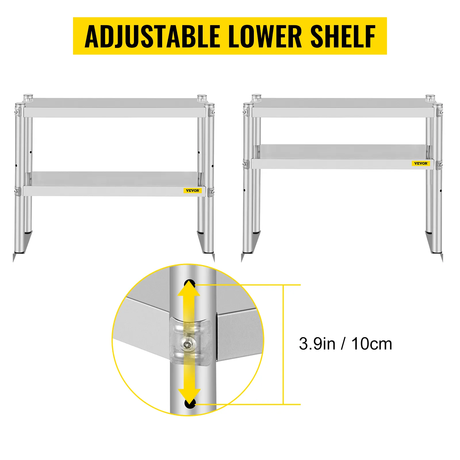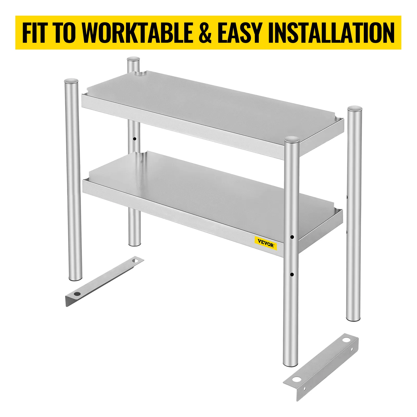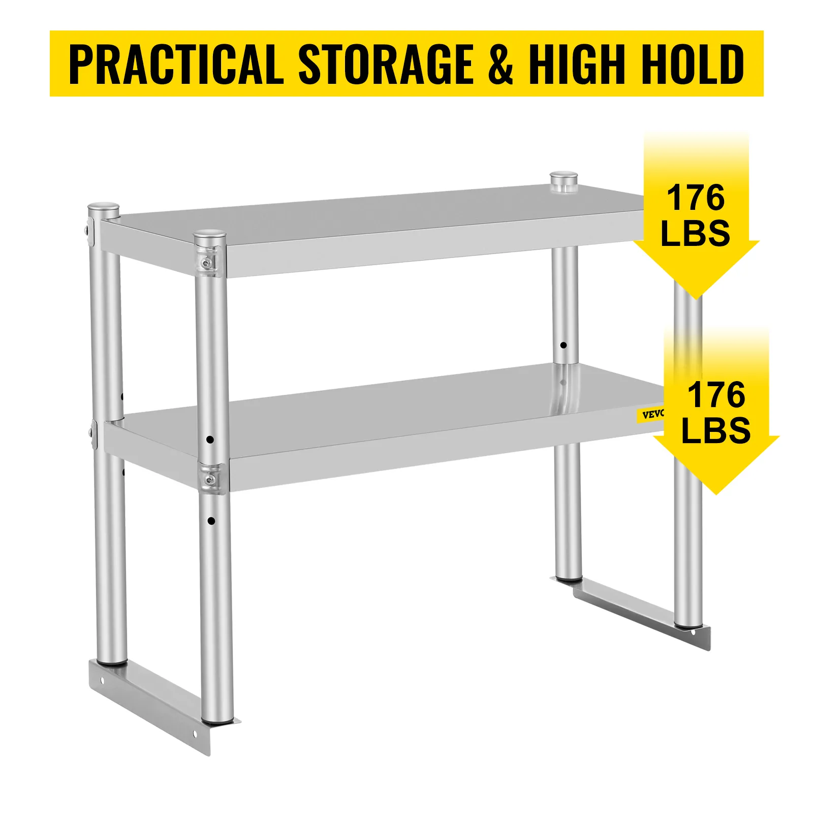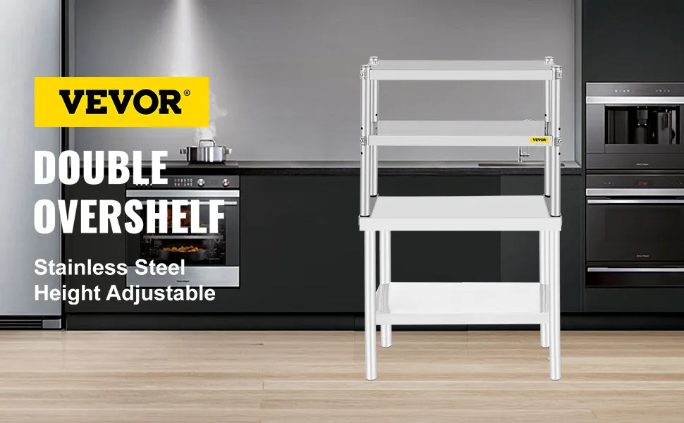 Hecho de acero inoxidable apto para uso alimentario, este resistente estante superior doble se adapta perfectamente a la mesa de preparación de su cocina, protege contra la corrosión y resiste un uso prolongado. Además, el soporte de diseño triangular mejorará la estabilidad y la capacidad de carga del estante.