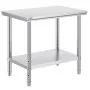 Esta mesa de preparación para la cocina tiene una resistencia superior al proporcionar una capacidad de carga de 176 lb en el estante superior y 110 lb en el estante inferior sin sacudidas. Además, le ofrece un lugar para almacenar artículos de uso frecuente como baldes desinfectantes, toallas, tazones para mezclar, tablas para cortar y más.