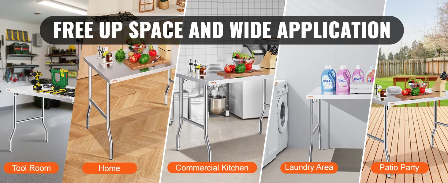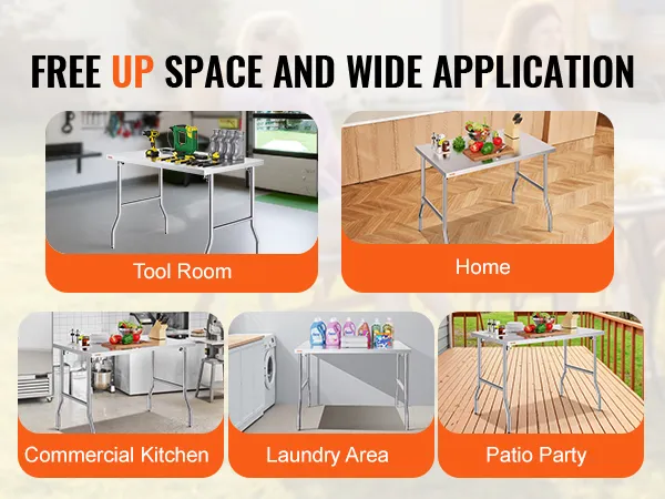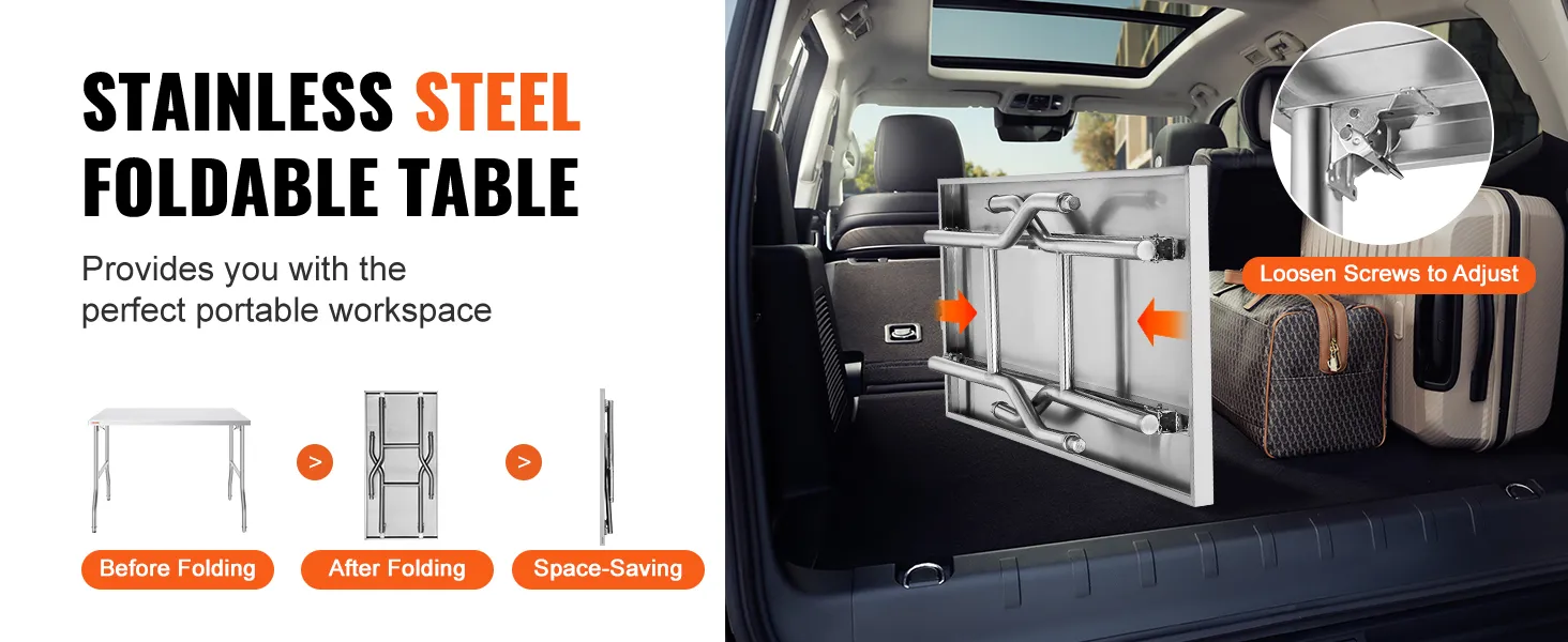 Space-Saving Foldable Design: This stainless steel work table features an easy folding mechanism, making it convenient for both indoor and outdoor use. The four legs can quickly fold down, fitting easily into your trunk for transport to remote areas, and it can be easily stored when not in use. Ideal for outdoor activities.