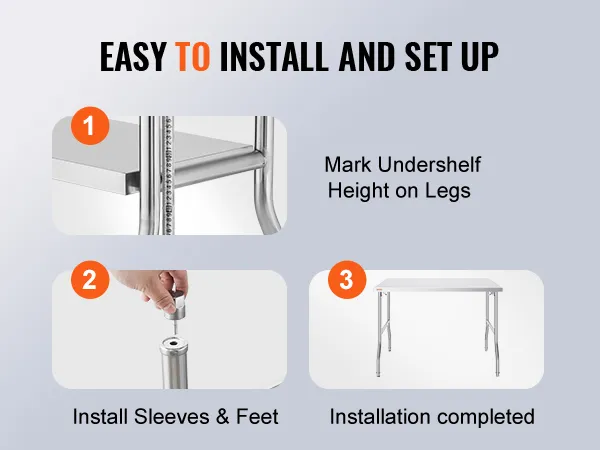 Made from SUS201 stainless steel for the tabletop, shelves, and legs, our work table boasts superior rust resistance and a more appealing finish compared to competitors using 430 stainless steel or galvanized materials. These tables meet strict public health protection standards.