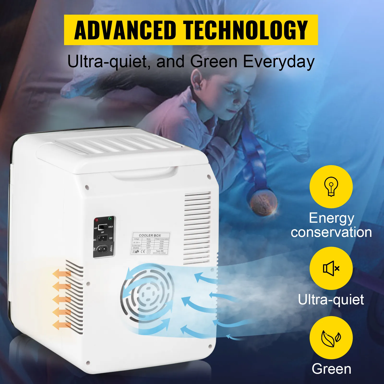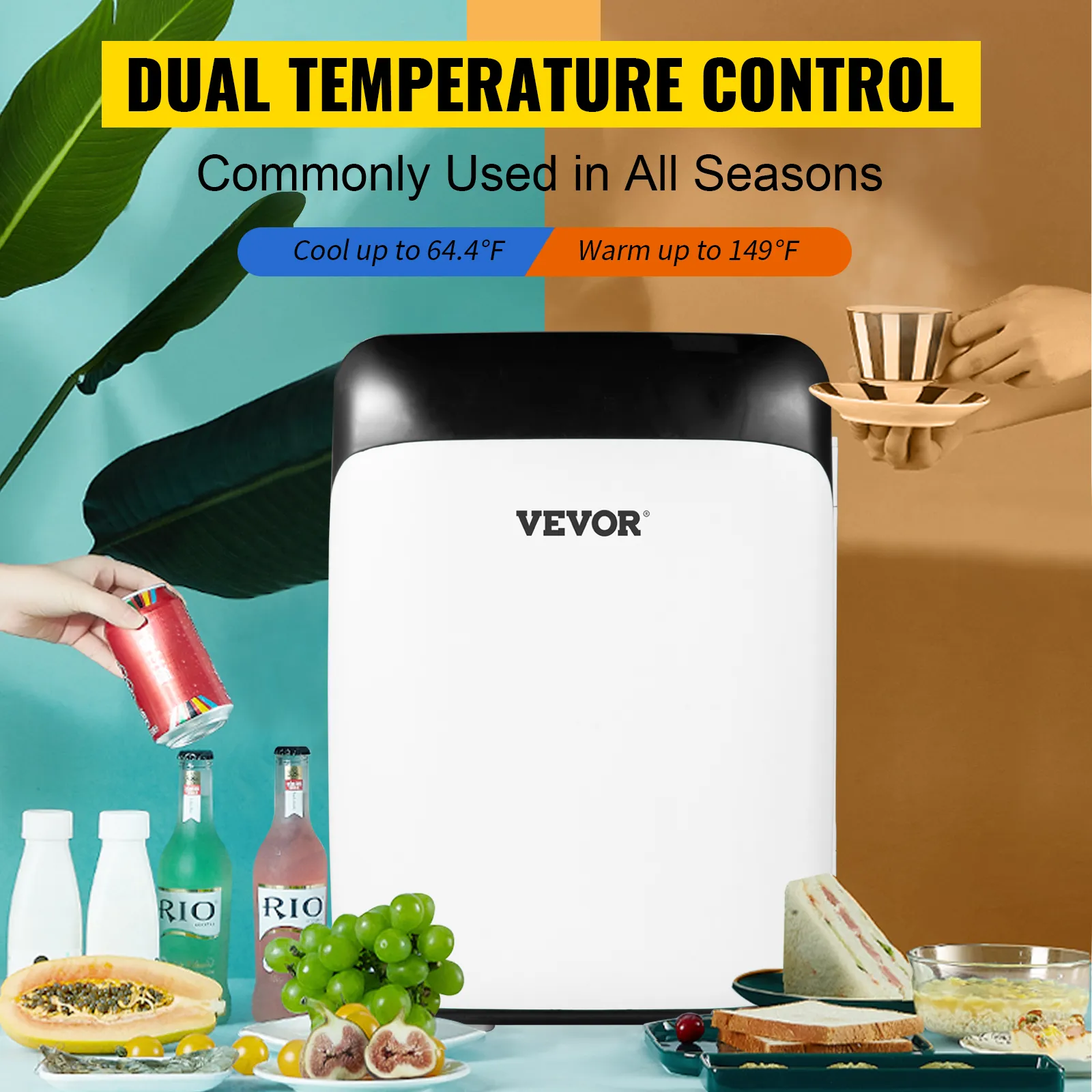 Hemos diseñado dos modos para la mininevera portátil: enfriar y calentar. El sistema de modo dual le permite no sólo enfriar los alimentos, sino también calentarlos o mantenerlos calientes. Con solo pulsar el interruptor, puede elegir entre enfriar hasta 64,4℉ o calentar hasta 149℉. Es su mejor opción para todas las estaciones.