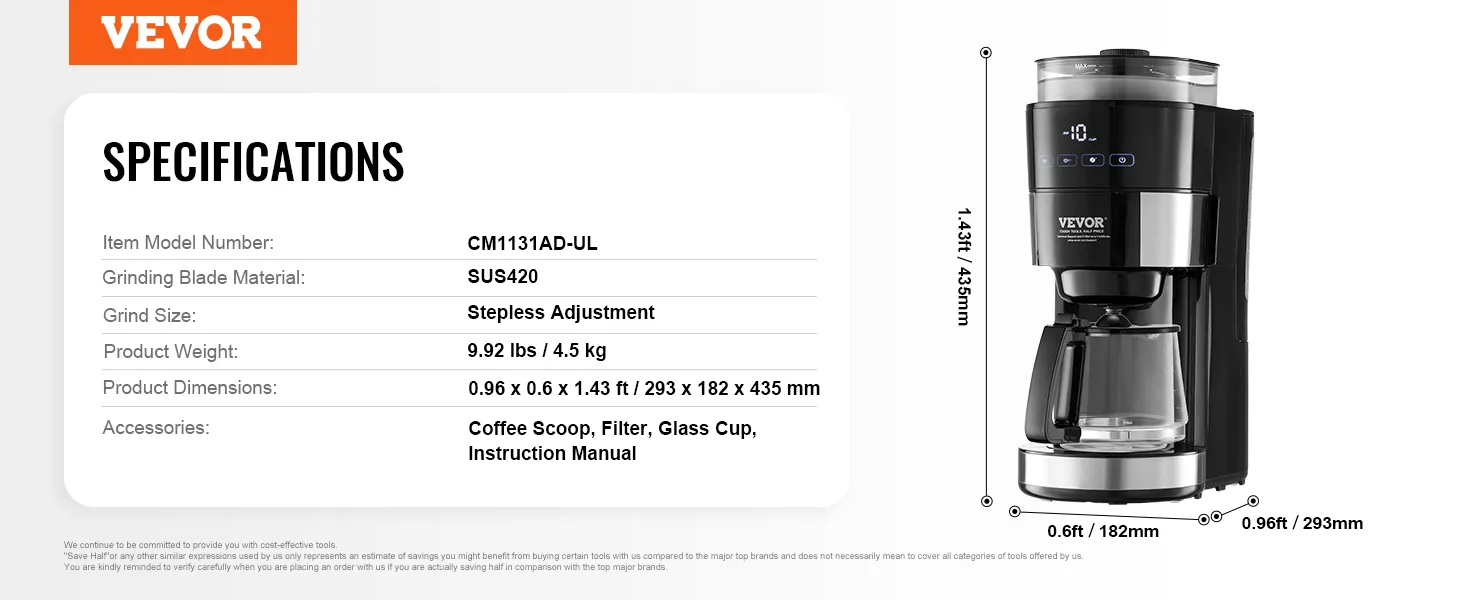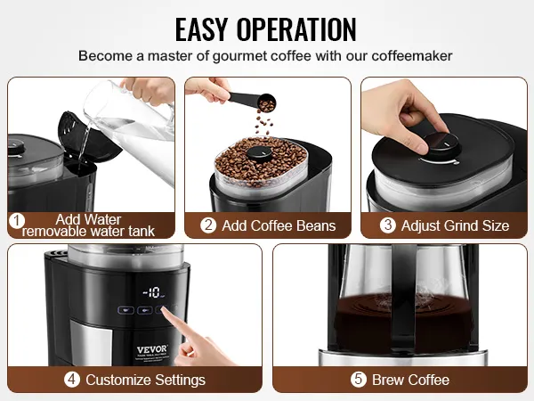 Suitable for Coffee Beans and Ground Coffee: Switch between automatic grinding and brewing coffee beans or brewing with pre-ground coffee. Using pre-ground coffee saves the grinding time and is especially convenient for busy mornings or urgent situations.
