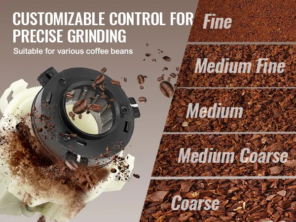 Simply turn the adjustment knob to achieve any grind size from extra fine to coarse, catering to the different needs of light to medium roast and dark roast beans.