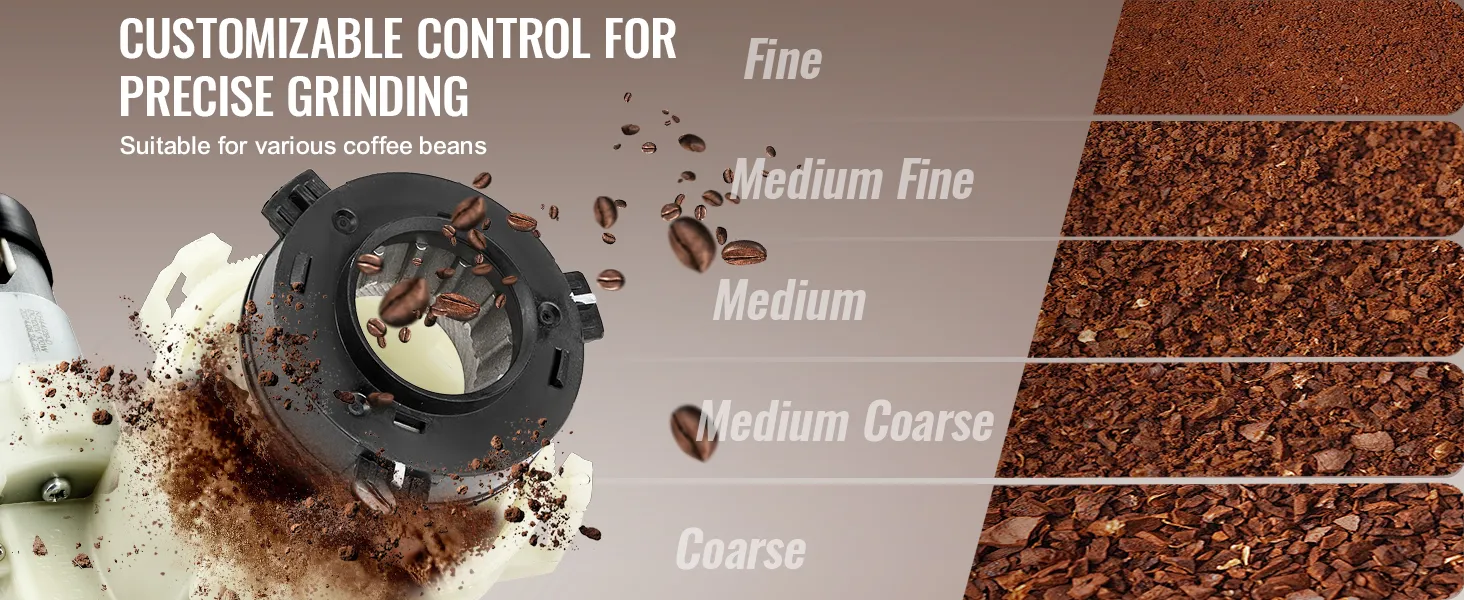 Adjustable Grinding Coarseness: With simple adjustment settings, you can easily switch between different grinding coarseness, allowing you to make the best grinding choice for various types of coffee beans. This ensures that you can enjoy high-quality coffee at home.