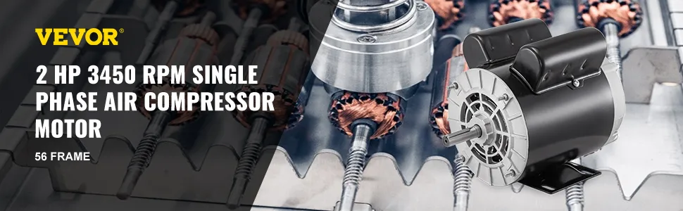 - El motor eléctrico del compresor de aire de servicio pesado de VEVOR tiene una potencia nominal de 2 HP SPL 3450 RPM y se puede conectar a dispositivos de alimentación de entrada de 115/230 V. Este motor eléctrico monofásico de estructura 56 cumple con el estándar de alta dureza y rendimiento, lo que lo hace ideal para aplicaciones de compresores de aire. Construido duro para trabajar duro, ¿puedes manejar eso? ¡Nuestro motor hará rugir su compresor de aire para el próximo trabajo!
