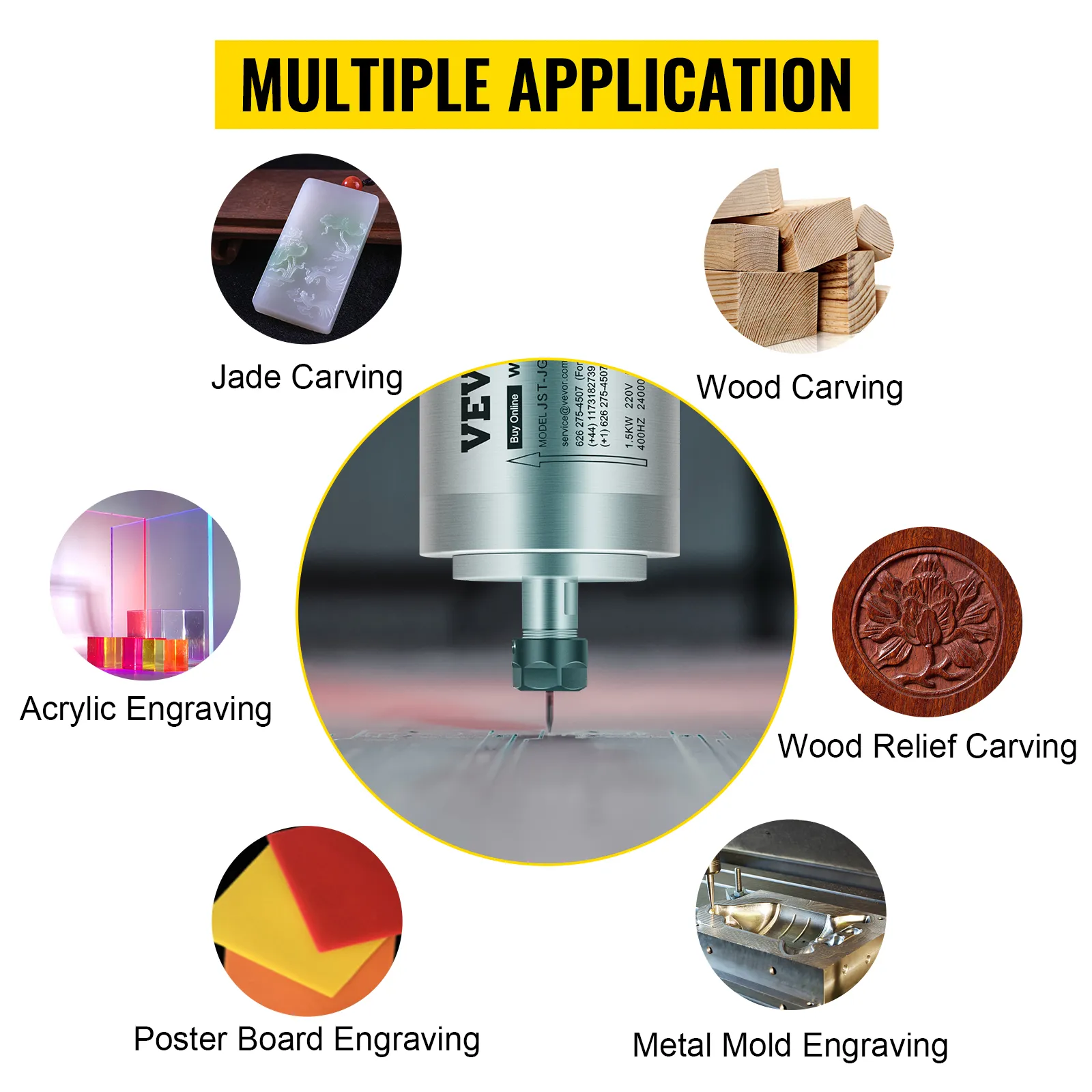 Estos motores de husillo utilizan rodamientos importados y materiales de acero inoxidable de alta calidad, y su vida útil triplica la de los motores de husillo convencionales. Son ampliamente aplicables a máquinas de grabado para madera, piedra, metal y otros materiales.