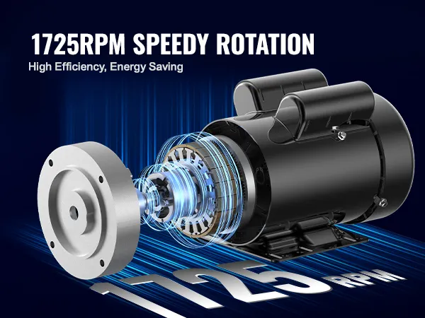 El motor eléctrico VEVOR de 1.5 HP alcanza una alta velocidad de 1725 RPM, ofreciendo un potente rendimiento en diversas aplicaciones. Su robusta potencia garantiza un funcionamiento eficiente, lo que lo hace ideal para maquinaria agrícola y equipos industriales, a la vez que ahorra energía y aumenta la productividad.