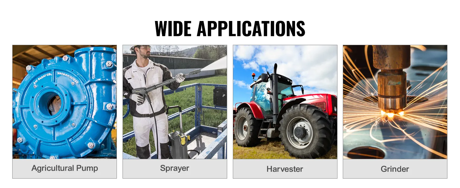 Amplia gama de aplicaciones: El motor VEVOR de 1 HP es de uso general, ideal para bombas de agua, maquinaria agrícola y equipos generales. Es perfecto para proyectos de bricolaje y reparaciones, ofreciendo una funcionalidad versátil y potente para diversas necesidades.