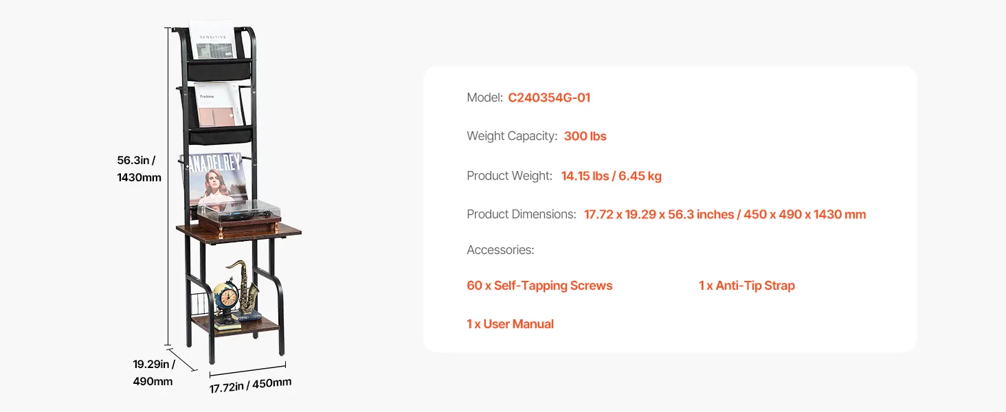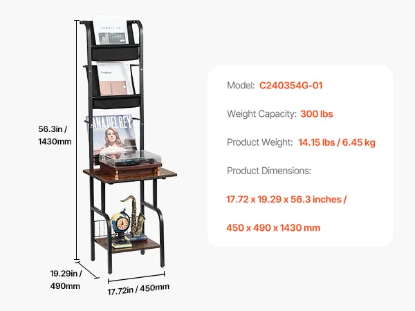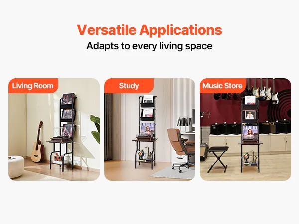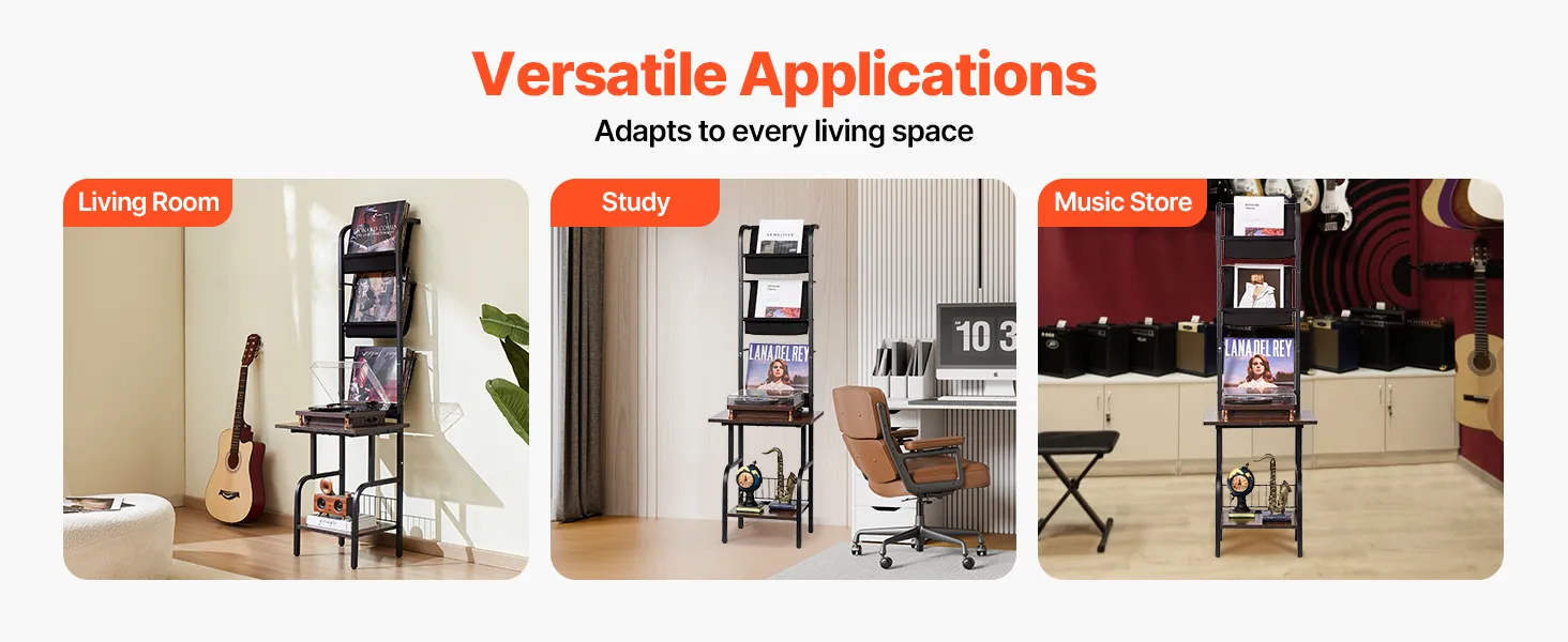 Sturdy and Reliable Materials: Made with waterproof and scratch-resistant panels, this record holder stand offers a solid structure and strong weight capacity. Built to last, it resists deformation and wobbling over time, so you can enjoy worry-free use without needing to replace furniture frequently.