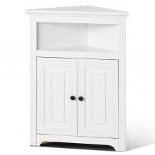 VEVOR - Armario de esquina de 81 cm, pequeño, de 3 niveles, con 2 puertas de madera y estantes ajustables, ideal para cocina, salón, lavandería y baño. Color blanco.