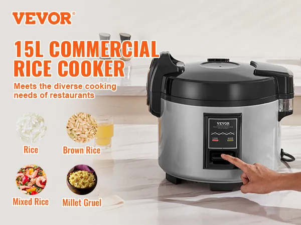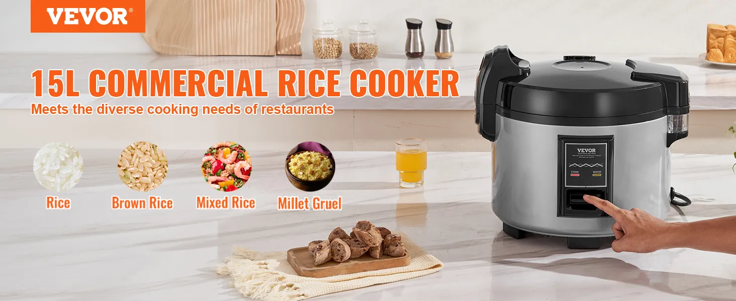 Olla arrocera comercial VEVOR de 70 tazas, olla arrocera grande de 15 litros con olla interior antiadherente, cocción rápida y 12 horas de conservación del calor, con taza y paleta para arroz, para restaurante.