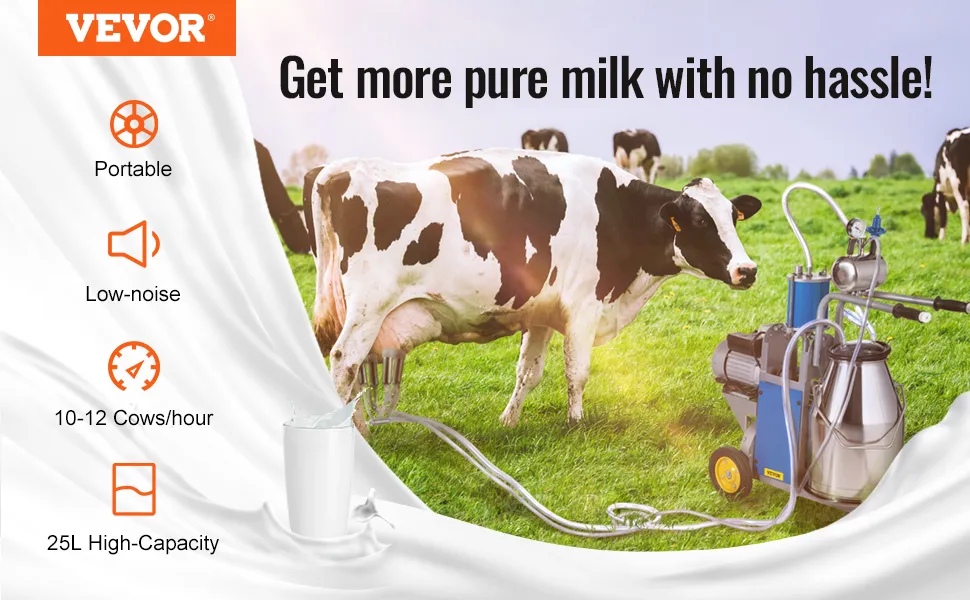 La máquina de ordeño está diseñada para ordeñar vacas o cabras, etc., ordeñar 10-12 vacas o cabras a la hora. Esta máquina de ordeño superior cambia de ordeño manual a máquina para un ordeño más rápido. Para reducir el estrés en su rebaño y mejorar la calidad de la leche y aumentar la producción de leche.