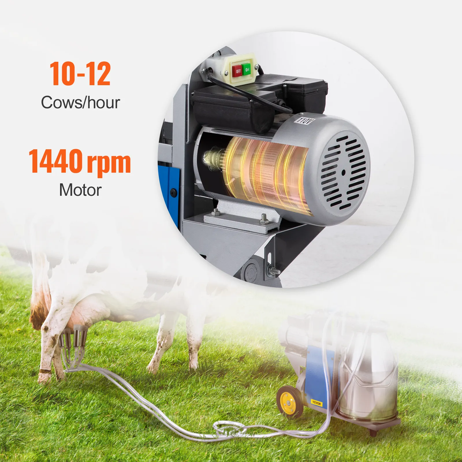 Este equipo de ordeño es excelente para uso en una pequeña granja, diseñado para ordeñar vacas o cabras, etc. Si necesita ordeñar cabra u oveja, reemplace el cabezal de succión de leche de cabra u oveja.