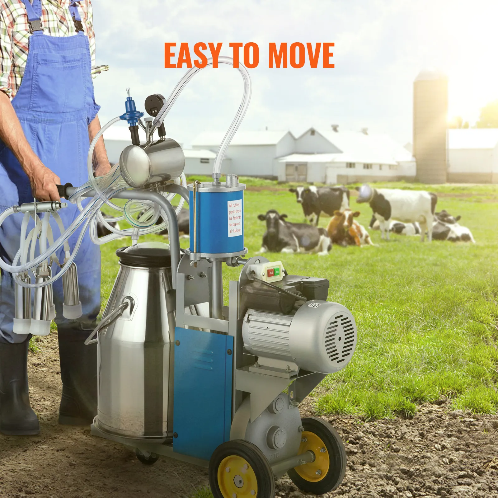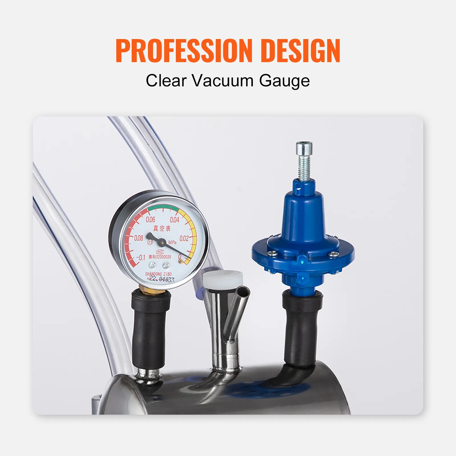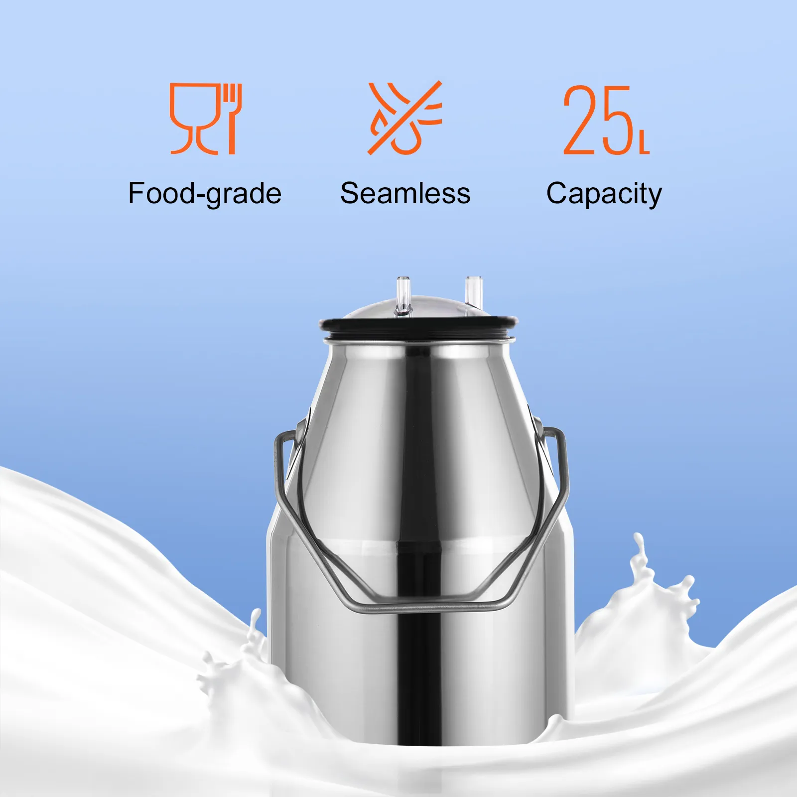 Esta máquina ordeñadora de acero inoxidable de 25 L se diseña con una cubeta de calidad alimentaria y una manguera de aire de goma inofensiva para máxima seguridad e higiene.