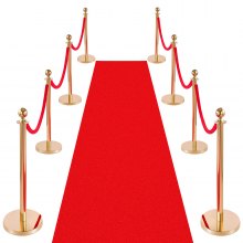 VEVOR Poste Guía de Barrera 8 Piezas con 6 Cuerdas de Terciopelo y Alfombra Roja, Barrera de Marcado de Control con Base, para Cola de Separación de Demarcación en Teatro Hotel Exposición, Dorado