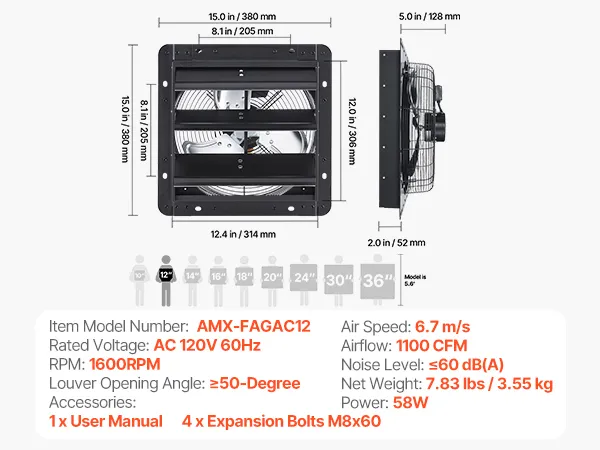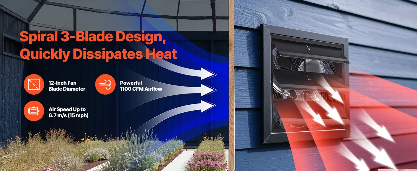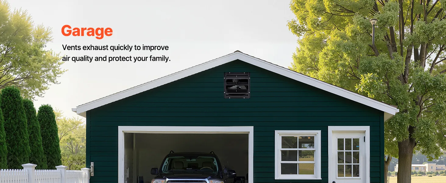 Ventilación rápida: Este extractor de aire con persiana proporciona 1100 CFM para expulsar rápidamente el aire viciado, la suciedad flotante, el calor y los malos olores, manteniendo el aire interior fresco. También funciona como extractor de aire de alto flujo para cobertizos y talleres.