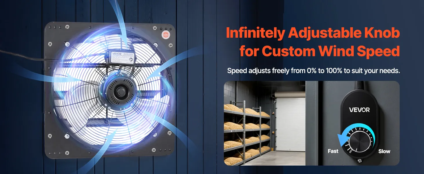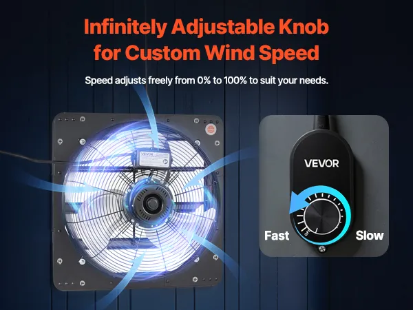Velocidad variable suave: El control de velocidad variable continuo pone el flujo de aire a su alcance. El controlador incluido le permite ajustar el extractor desde una suave brisa hasta una potente ráfaga para adaptarse a diferentes necesidades de ventilación.