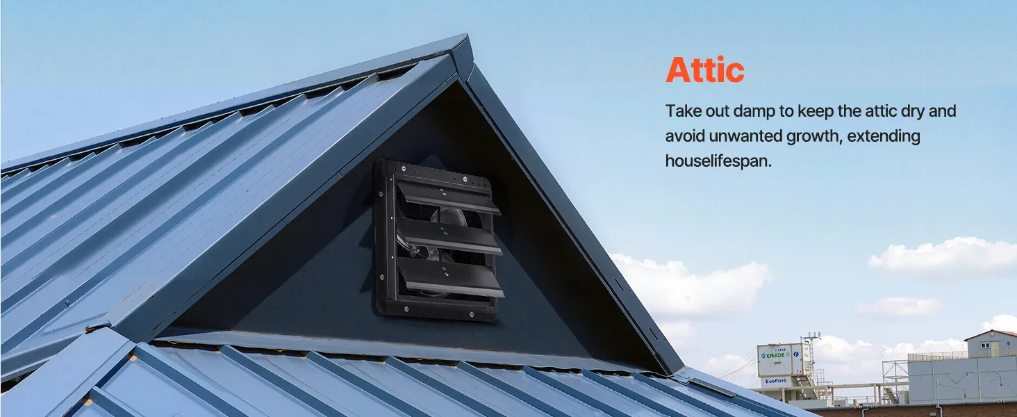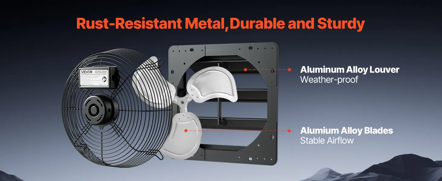 Motor de CA premium: 1600 RPM y 58 W que proporcionan un flujo de aire de hasta 6,7 m/s con un funcionamiento suave y silencioso, eficiente y estable para una experiencia silenciosa y cómoda. Ideal como ventilador de ático para ventilación durante todo el año.