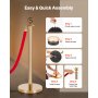 VEVOR Poste Guía de Barrera 6 Piezas con 4 Cuerdas de Terciopelo Rojas, Barrera de Marcado de Control de Multitudes con Base, para Cola de Separación de Demarcación en Teatro Hotel Exposición, Dorado