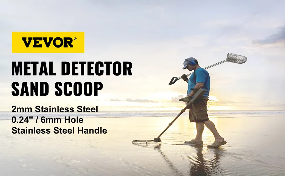 Fabricado en acero inoxidable de 2 mm de espesor de alta calidad, es resistente y lo suficientemente duradero para una vida útil prolongada. Los orificios redondos de 6 mm están diseñados para una búsqueda y un tamizado rápidos. El diseño ergonómico del mango le ofrece un agarre cómodo y fácil. Al ser resistente y liviano, es fácil de transportar. Además, puede funcionar con un detector de metales para la búsqueda de tesoros.