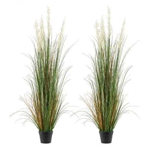 VEVOR Césped Artificial, Paquete de 2, 89 cm, Hierba de Totora en Maceta, Arbustos Verdes Artificiales de PVC Premium para Interiores, Exteriores, Casas, Jardines, Oficinas, Decoración de Hogar, Inauguración, Verde