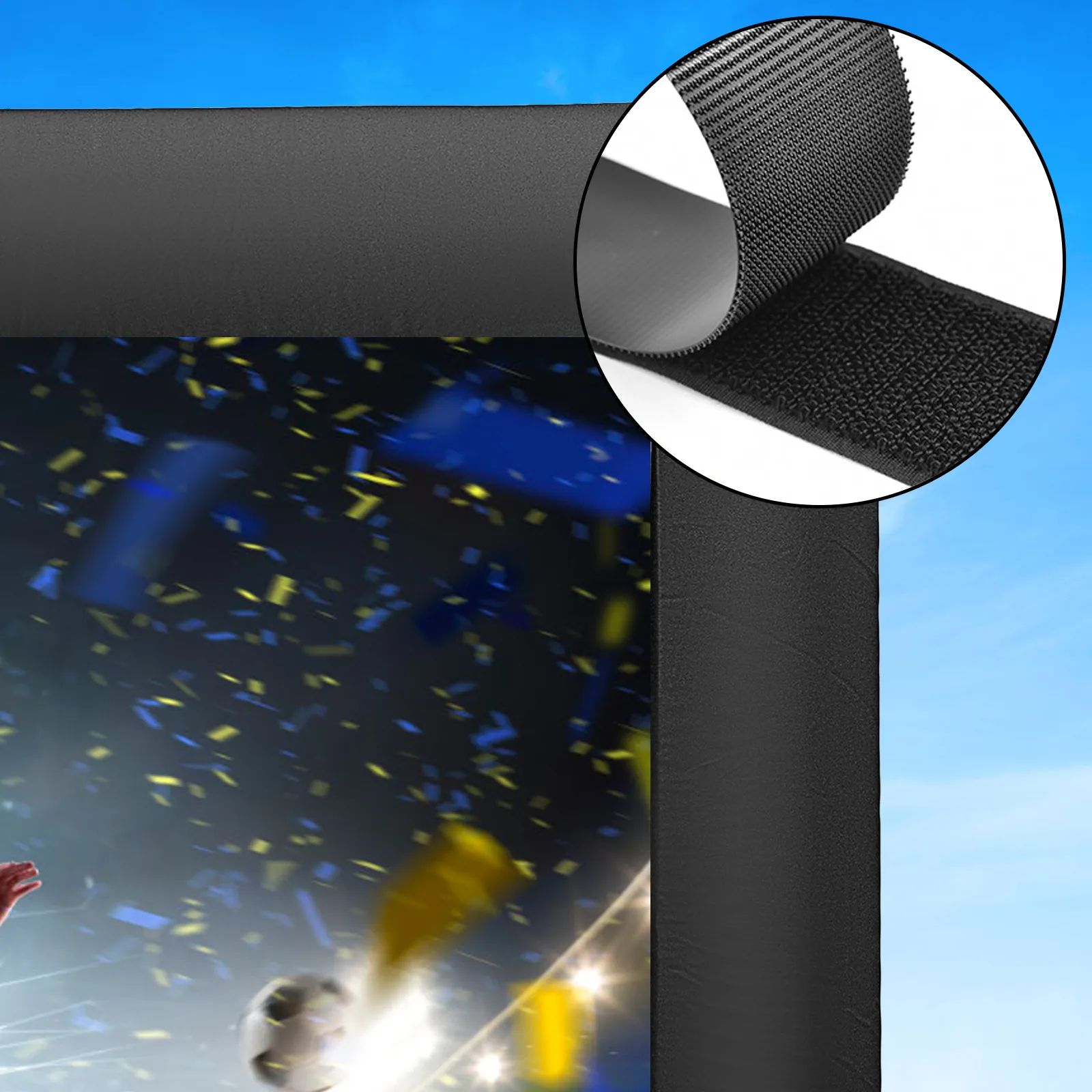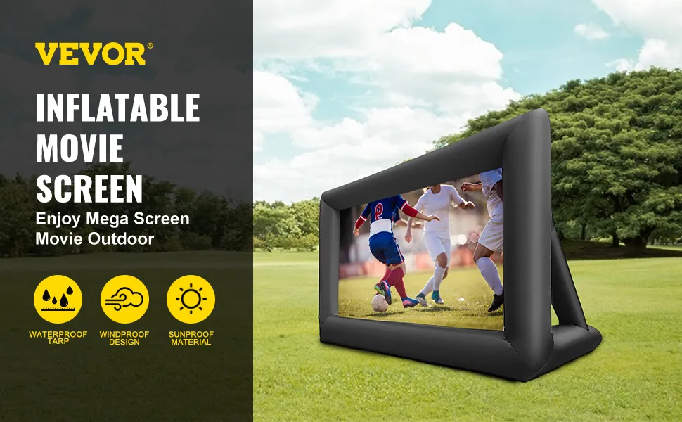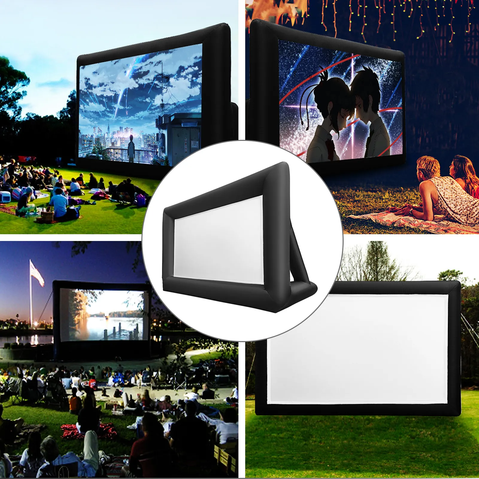 Nuestra pantalla de cine está diseñada para ayudarlo a divertirse más en la fiesta en casa y en la barbacoa al aire libre. Se sopla automáticamente rápidamente en 2 minutos cuando está enchufado. Puede crear una pantalla panorámica de tamaño completo que muestre películas, programas de TV, videos o juegos favoritos. Se puede crear un ambiente alegre, mientras los amigos, los niños, los colegas o los vecinos se divierten.