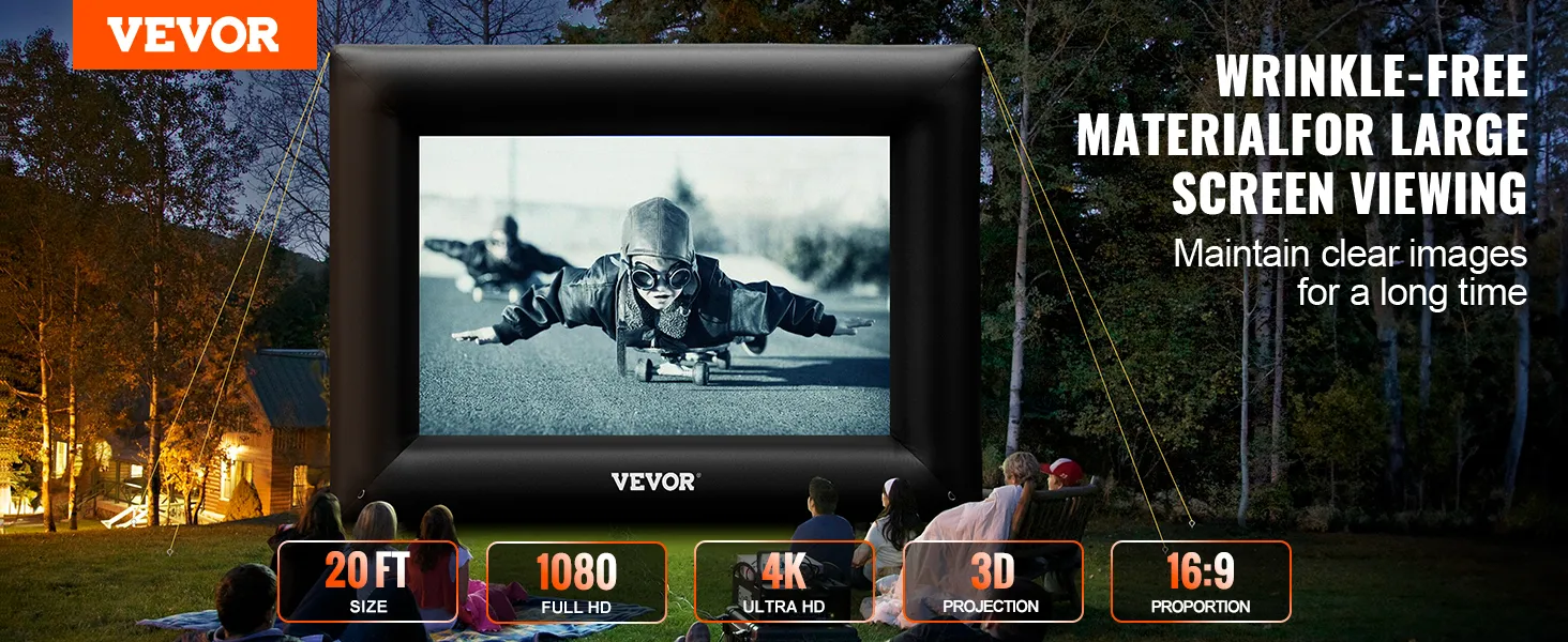 Nuestra pantalla de cine está diseñada para ayudarte a divertirte más en fiestas en casa y barbacoas al aire libre. Se sopla automáticamente rápidamente en 2 minutos cuando está enchufado. Puede crear una pantalla panorámica de tamaño completo que muestre películas, programas de TV, videos o juegos favoritos. Se puede crear un ambiente alegre, mientras los amigos, los niños, los colegas o los vecinos se lo pasarán bien.