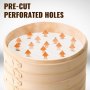Se han precortado agujeros suficientes y apropiados para acelerar la circulación del vapor, lo que permite que los alimentos se calienten por completo y de manera uniforme sin afectar a la calidad de la cocción.