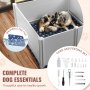 El montaje es tan sencillo como seguir las instrucciones del manual: basta con encajar los paneles y fijarlos con los cuatro tornillos incluidos. La limpieza es igual de sencilla: las paredes lisas se pueden limpiar con un paño, lo que mantiene la caja de parto fresca para los perros con un mínimo esfuerzo.